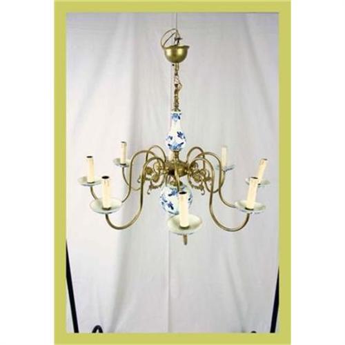 </STRONG>Title: 1950 Dutch 8-Arm Blue Delft Chandelier Hand-Painted</STRONG><P>Item #: 7-13-0</P><P>Comment: A stunning piece for any room in your home!</P><P>Condition: In overall very good condition. Some wear to finish and a chip to inside edge of one cup rim (not visible from floor) due to age and use.</P><P>Dimensions (in.): 29.5H 31W 31D </P><P>Age (ca.): 1950</P><P>Origin: Holland</P><P>Size: 8-Arm</P><P>Style: Blue Delft</P><P>Material: Brass</P><P>Material 2: Ceramic</P><P>Object: Chandelier</P><P>Additional Detail 1: Hand-Painted</P><P>Piece Type: Lighting</P><P>Special Message: <P>Chandeliers listed by EuroLuxAntiques were functioning in our retail location at the time of listing on various online sales channels, however, EuroLuxAntiques and EuroLux Imports, Inc., makes no warranties, express or implied, regarding safety, future functioning, fire hazard or compliance with applicable building codes in your area. We recommend that you seek the advice of a licensed electrician prior to installation.</P><P>Because EuroLuxAntiques maintains its own website and lists on other online sites, while also operating a physical store location in Newberry, South Carolina, we reserve the right to end any listing ...