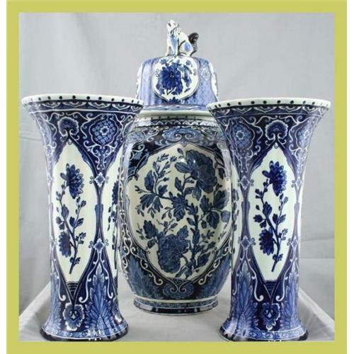 </STRONG>Title: 3-PC 1970 Belgian Blue Delft Garniture Set Royal Sphinx Boch Transferware</STRONG><P>Item #: 6-78-0</P><P>Comment: Vibrant blue color with lion ornament on top.</P><P>Condition: Tiny chip on underside of rim on ginger jar that is not readily noticeable and not visible at all when lid is on vase. Chip does not affect the beauty of the piece.</P><P>Dimensions (in.): Ginger Jar 15H x 8W x 8D; Garnitures (2) 10H x 5.25W x 5.25D </P><P>Age (ca.): 1970</P><P>Origin: Belgium</P><P>Style: Blue Delft</P><P>Material: Ceramic</P><P>Object: Garniture Set</P><P>Mark: Royal Sphinx Boch</P><P>Additional Detail 1: Transferware</P><P>Piece Type: Delft</P>Belgian Transferware Royal Sphinx Boch Garniture Set Blue Delft Ceramic