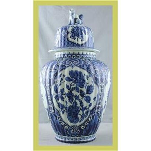</STRONG>Title: 1960 Dutch Blue Delft Ginger Jar Royal Sphinx Maastricht Transferware</STRONG><P>Item #: 6-5-0</P><P>Comment: Vibrant color with lion ornament on top.</P><P>Condition: In perfect condition!</P><P>Dimensions (in.): 18H 9.5W 9.5D </P><P>Age (ca.): 1960</P><P>Origin: Holland</P><P>Style: Blue Delft</P><P>Material: Ceramic</P><P>Object: Ginger Jar</P><P>Mark: Royal Sphinx Maastricht</P><P>Additional Detail 1: Transferware</P><P>Piece Type: Delft</P> #NTR# Dutch Transferware Royal Sphinx Maastricht Ginger Jar Blue Delft Ceramic