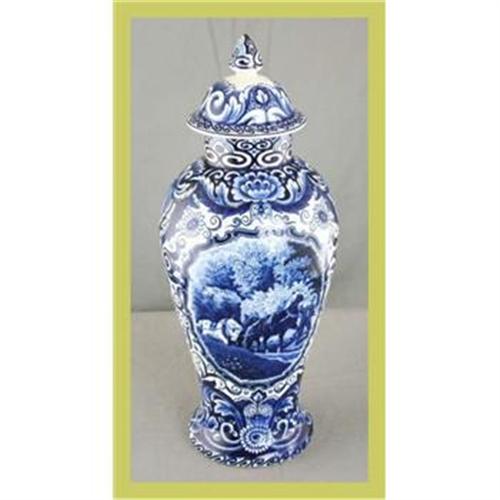 </STRONG>Title: 1930 Dutch Blue Delft Ginger Jar Societe Ceramique Horses Transferware</STRONG><P>Item #: 6-256-0</P><P>Comment: This vibrant blue lidded vase is so well-done that at first glance it seems to be hand-painted instead of transferware. A very nice piece!</P><P>Condition: In perfect condition!</P><P>Dimensions (in.): 13.5H 6.25W 6.25D </P><P>Age (ca.): 1930</P><P>Origin: Holland</P><P>Style: Blue Delft</P><P>Material: Ceramic</P><P>Object: Ginger Jar</P><P>Mark: Societe Ceramique</P><P>Subject: Horses</P><P>Additional Detail 1: Transferware</P><P>Piece Type: Delft</P>Dutch Transferware Societe Ceramique Horses Ginger Jar Blue Delft Ceramic