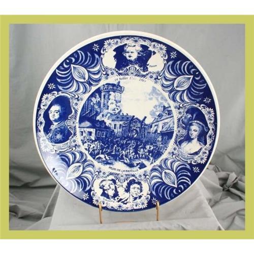 </STRONG>Title: 1989 Dutch Blue Delft Plate Chemkefa Bastille Commemorative 200th Anniversary Transferware</STRONG><P>Item #: 6-579-0</P><P>Comment: This commemorative plate for the 200th Anniversary of the French Revolution includes portraits of Robespierre, Marat, Louis XVI and Marie Antoinette.</P><P>Condition: In perfect condition!</P><P>Dimensions (in.): 15.5H 15.5W 1.75D </P><P>Age (ca.): 1989</P><P>Origin: Holland</P><P>Style: Blue Delft</P><P>Material: Ceramic</P><P>Object: Plate</P><P>Mark: Chemkefa</P><P>Subject: Bastille Commemorative 200th Anniversary</P><P>Additional Detail 1: Transferware</P><P>Piece Type: Delft</P> #NTR# Dutch Transferware Chemkefa Bastille Commemorative 200th Anniversary Plate Blue Delft Ceramic