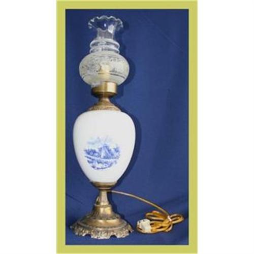 </STRONG>Title: 1935 Dutch Blue Delft Table Lamp Windmill </STRONG><P>Item #: 3-211-0</P><P>Comment: A very pretty lamp for your blue and white collection!</P><P>Condition: Some crazing to base does not affect the beauty or utility of the piece! Has been rewired for US voltage.</P><P>Dimensions (in.): 21.5H 6.5W </P><P>Age (ca.): 1935</P><P>Origin: Holland</P><P>Style: Blue Delft</P><P>Material: Ceramic</P><P>Object: Table Lamp</P><P>Subject: Windmill</P><P>Piece Type: Lighting</P>Dutch Windmill Table Lamp Blue Delft Ceramic