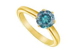 The unification of two into one is symbolized in this blue diamond solitaire ring. A brilliant-cut round blue diamond is securely held in a prong setting. Made in 14K yellow gold this solitaire ring has a total weight (TDW) of 1.50 carats.