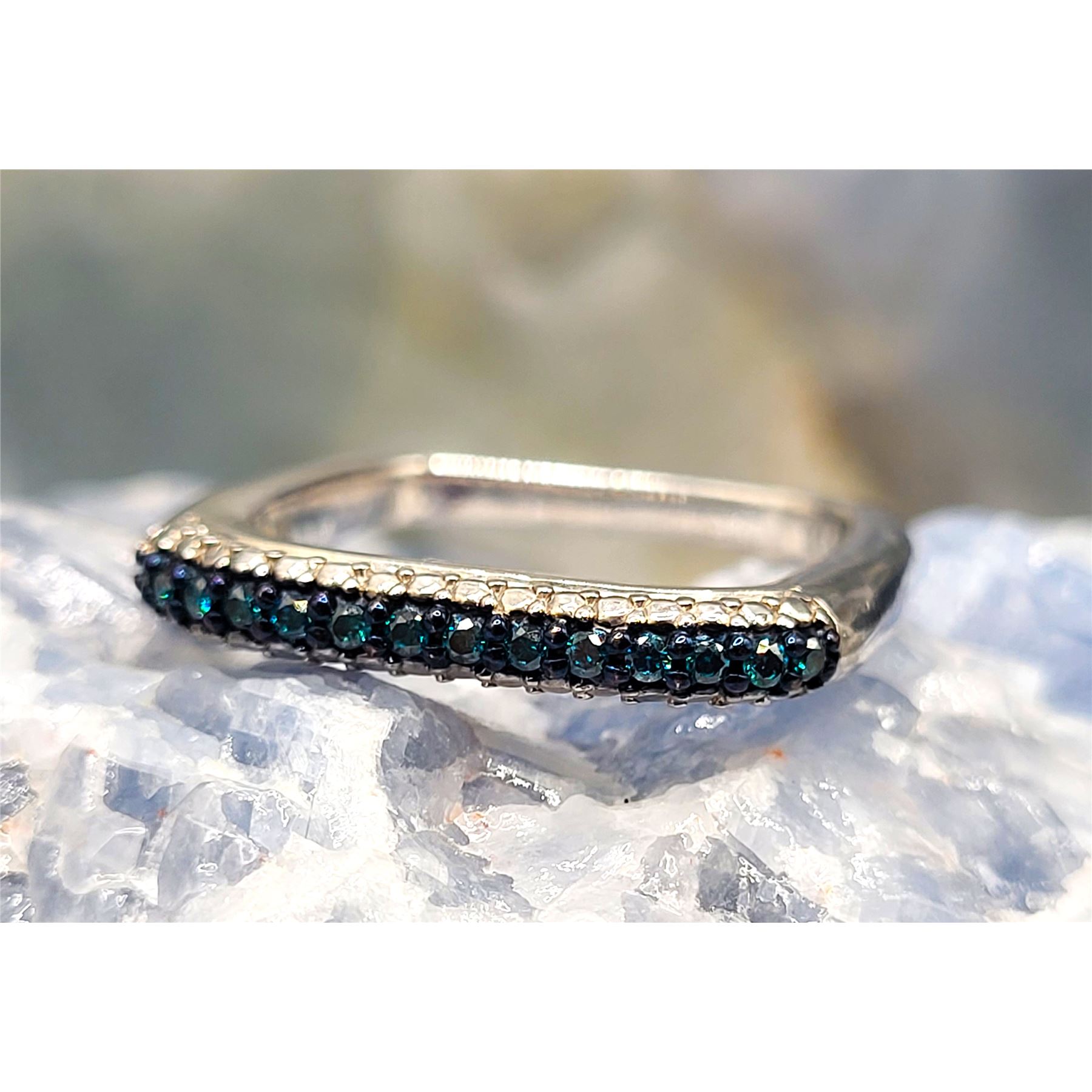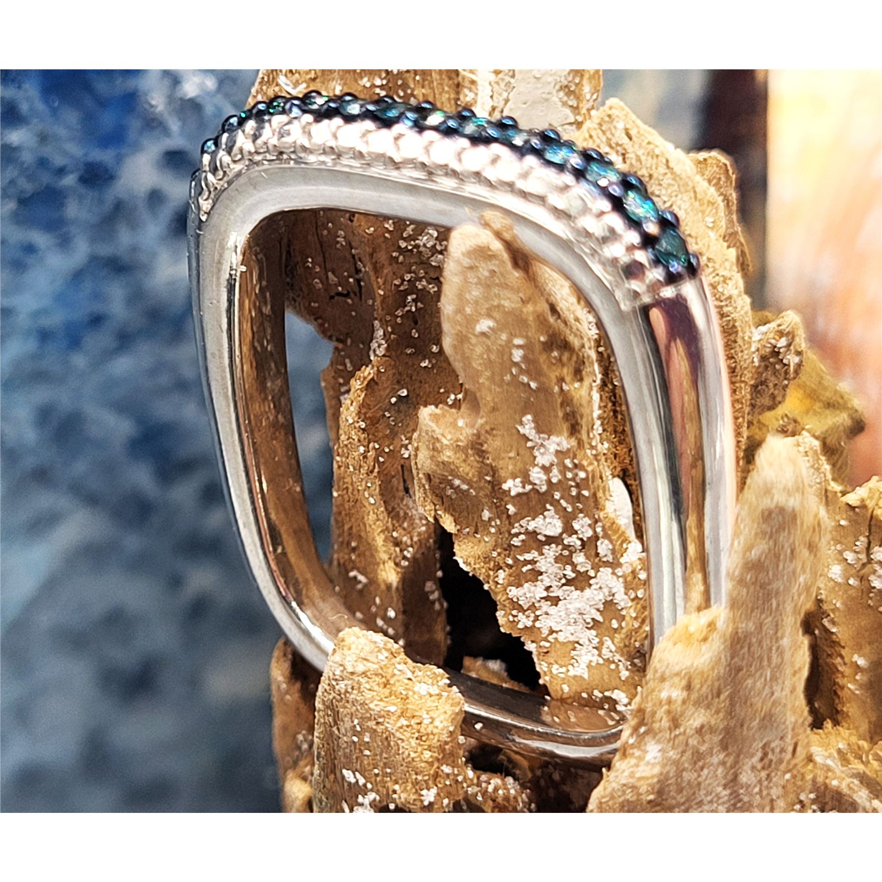 This sterling silver pendant is an open, square-shaped ring and no bail, featuring approximately .25 carats total weight of round, brilliant-cut, blue (enhanced*), I1 clarity diamonds. The pendant is approximately 1& quot; in diameter. The sterling silver is coated in rhodium to prevent tarnish and *enhanced with blue rhodium beneath the diamonds. Admin: 33119/15a