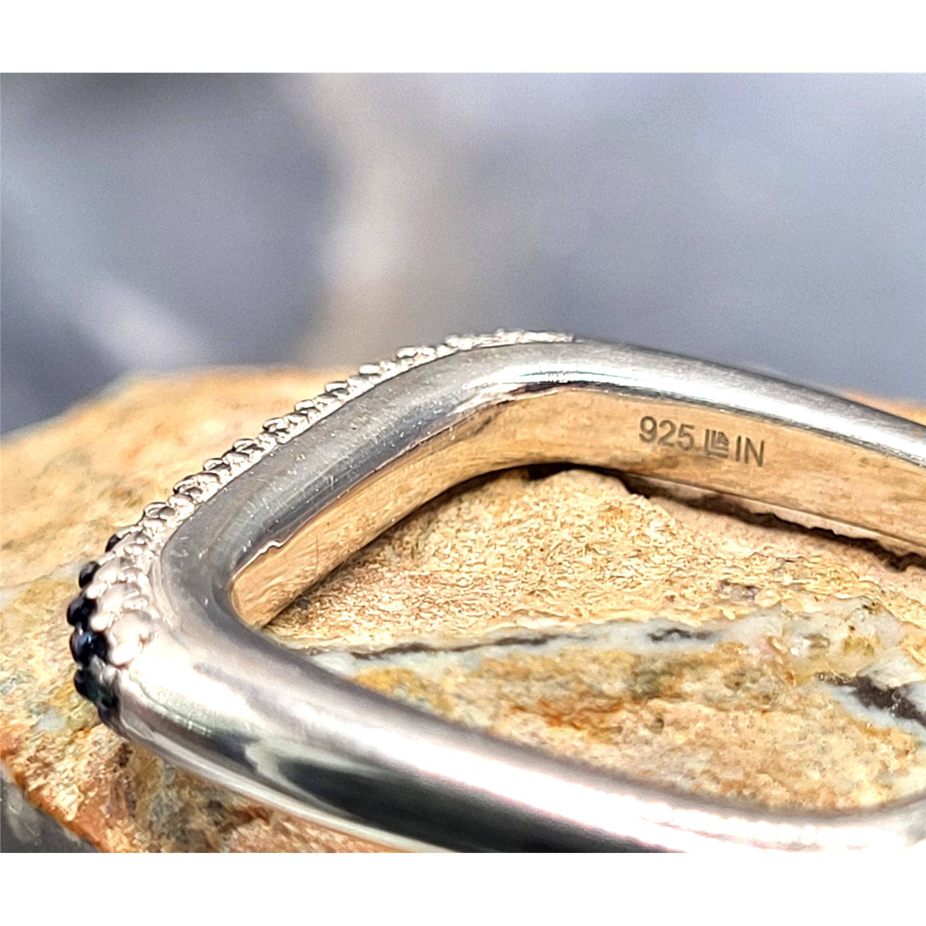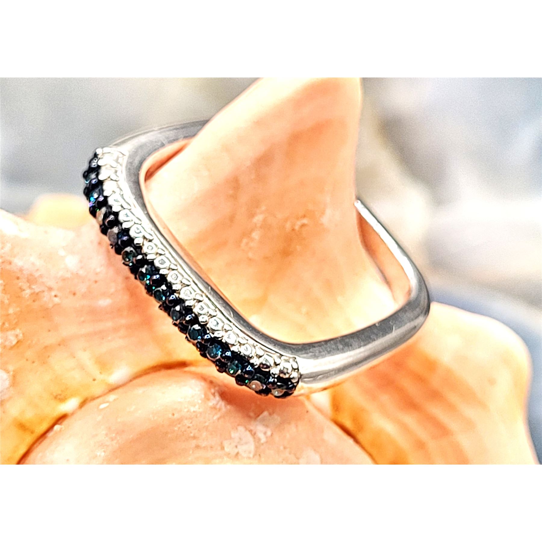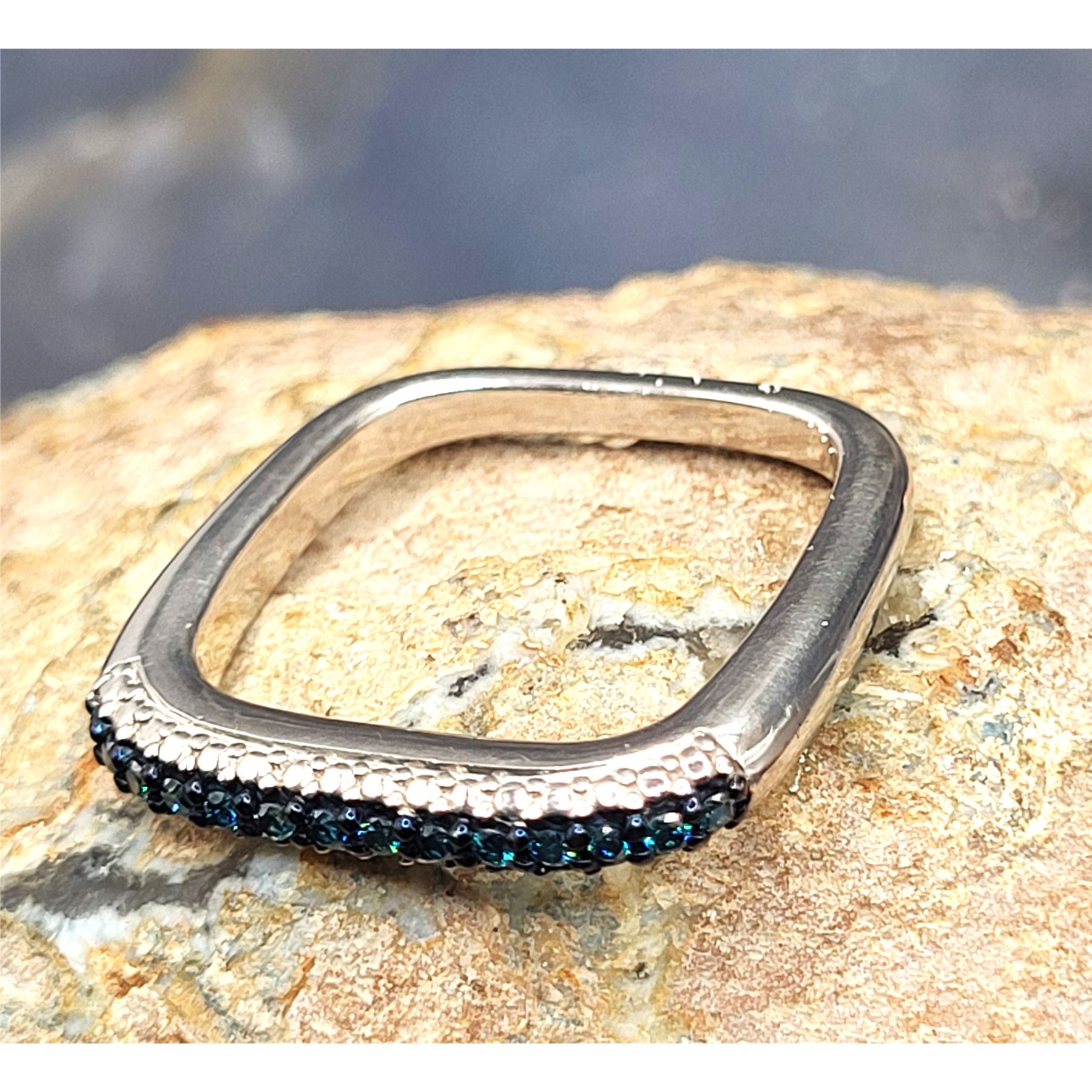 This sterling silver pendant is an open, square-shaped ring and no bail, featuring approximately .25 carats total weight of round, brilliant-cut, blue (enhanced*), I1 clarity diamonds. The pendant is approximately 1" in diameter. The sterling silver is coated in rhodium to prevent tarnish and *enhanced with blue rhodium beneath the diamonds. Admin: 33119/15a