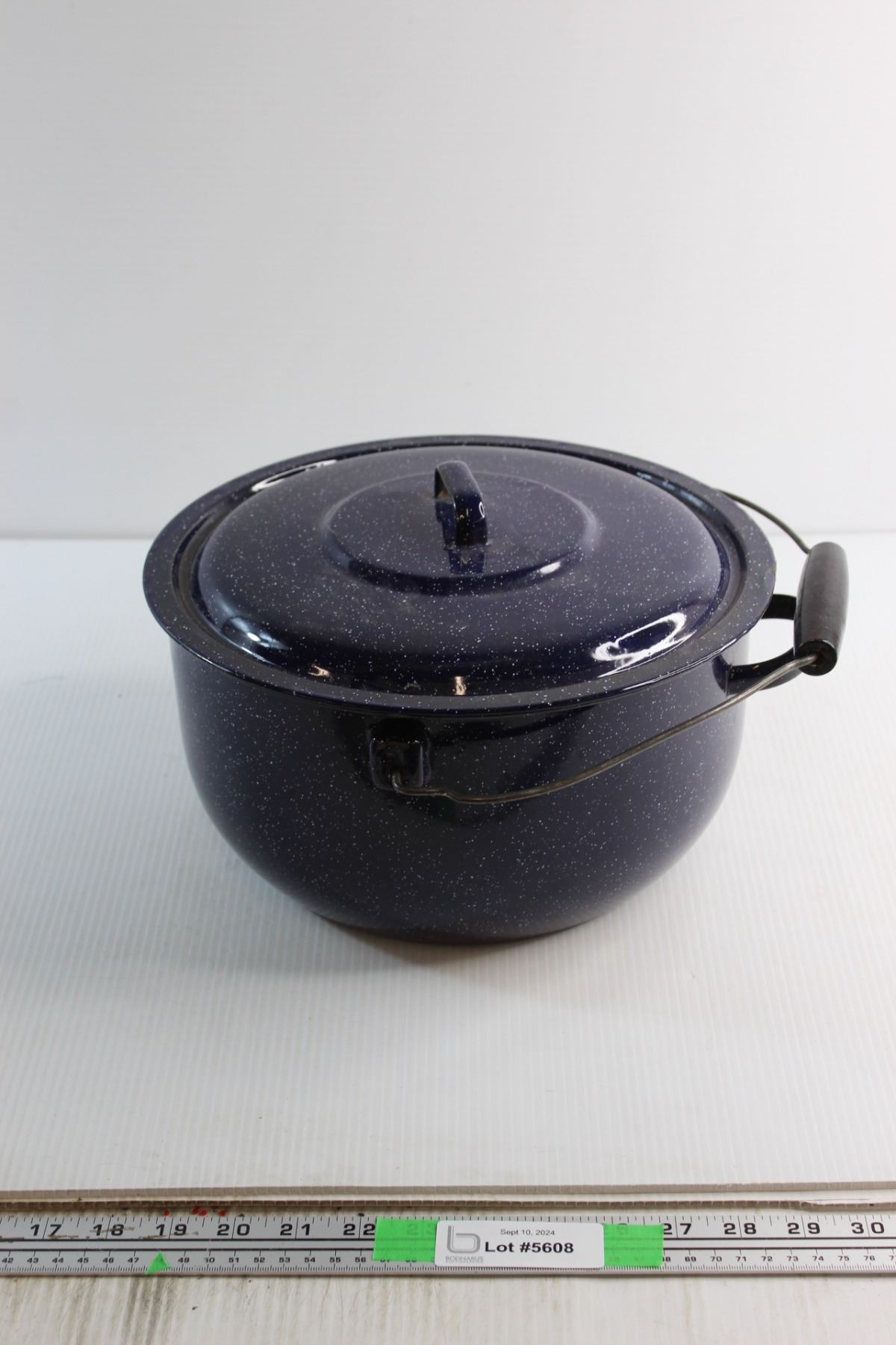 Blue Enamel Cooking Pot with Handle and Lid 12''