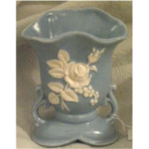<tr><td>Title:Blue Floral Weller Vase</td></tr>