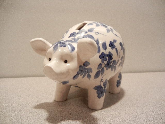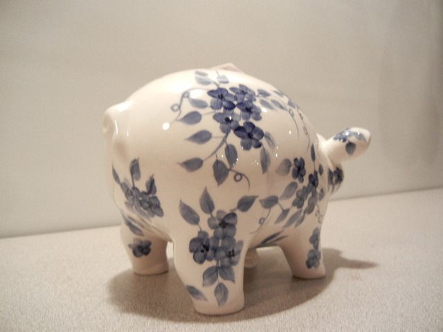 Blue Flowered Piggy Bank