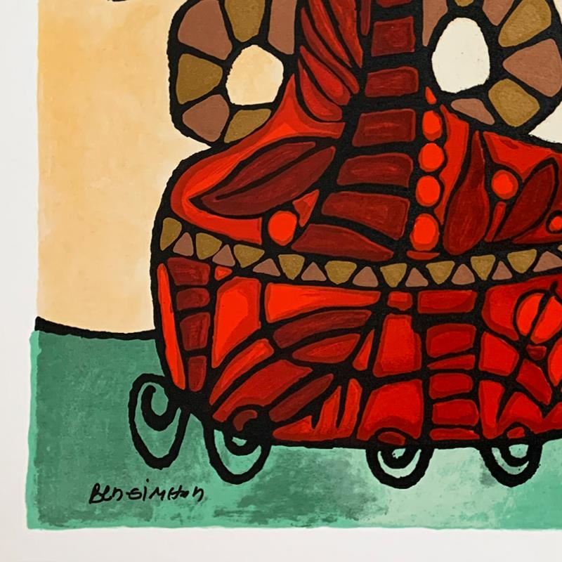This is a limited edition serigraph on paper by Ben Simhon. It is numbered and hand signed and includes a letter of authenticity. Measures approximately 27" x 17.5" (image).