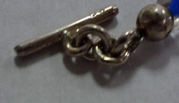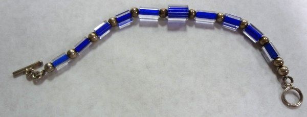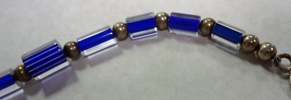 Homemade glass beaded bracelet. Beautiful blue color. 8" long.