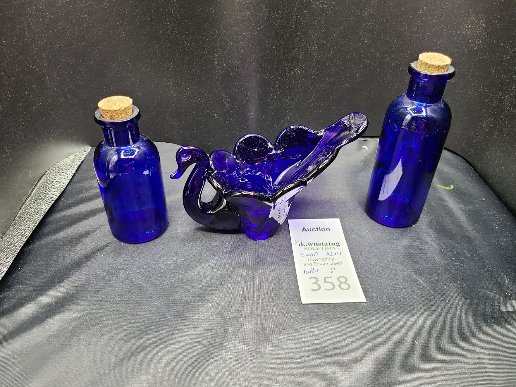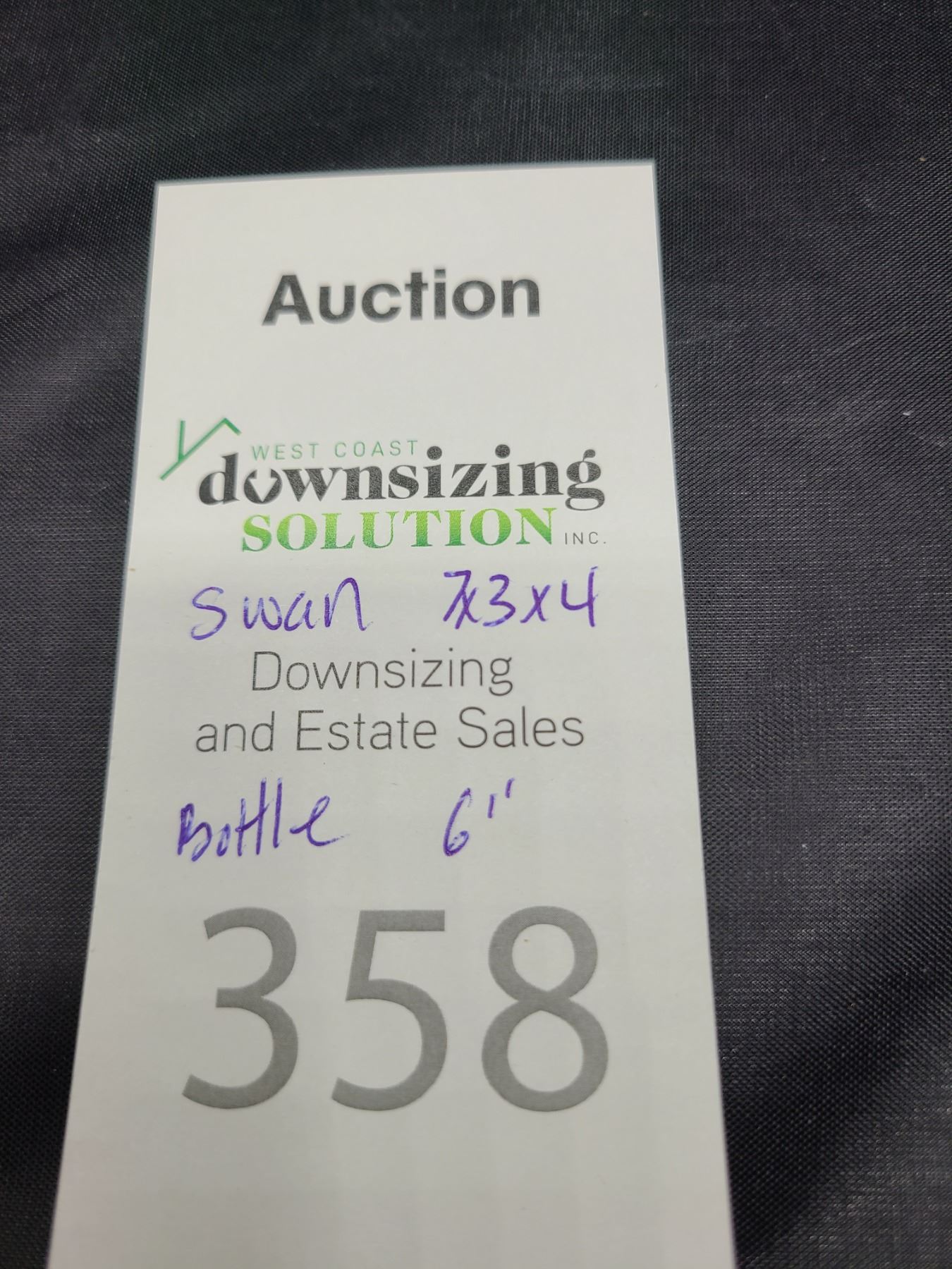 Glass swan 7x3x4 and largest bottle is 7" Bring packing material and pickup at 10 am