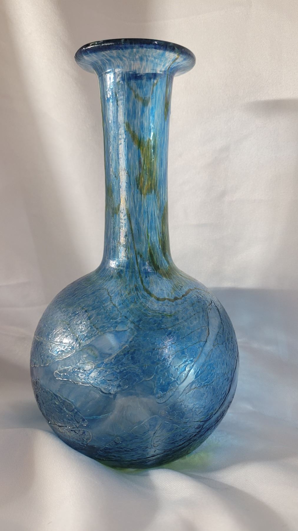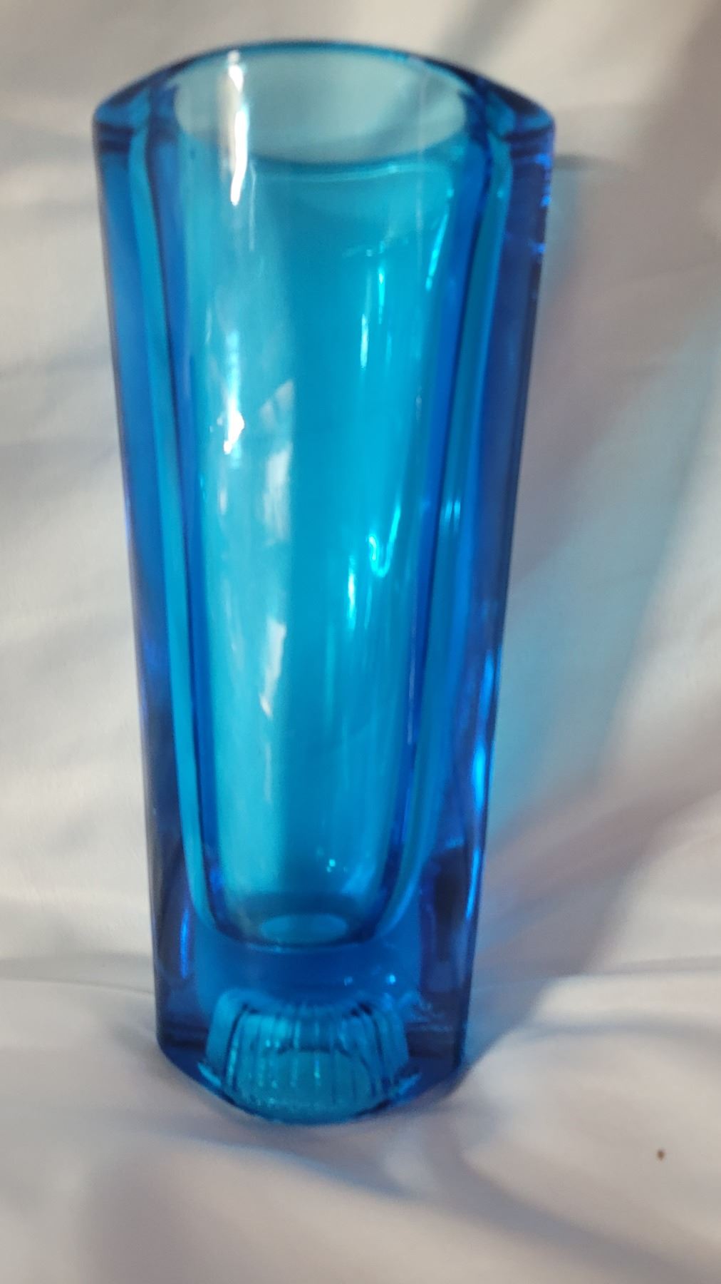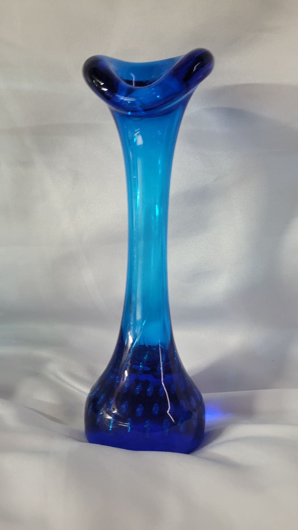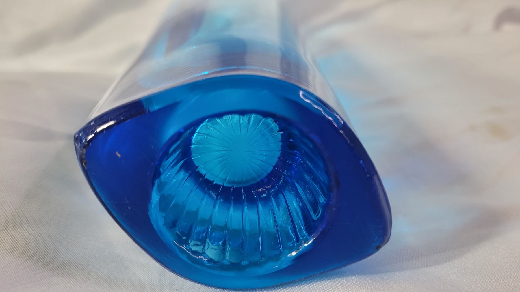 4 x blue glass vases, tallest is 9" Pickup at 9 am