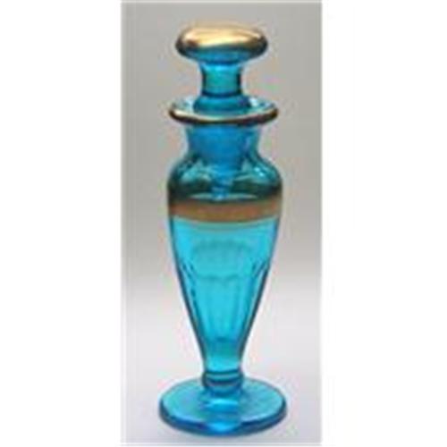 <tr><td>Title: Blue & Gold Depression Glass Perfume Bottle</td></tr>