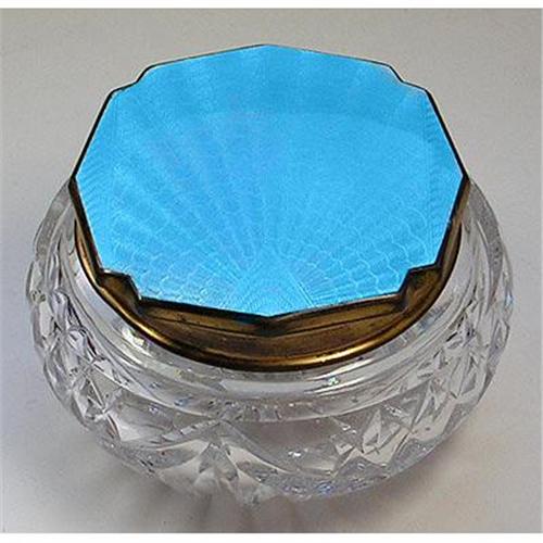 <tr><td>Title:Blue Guilloche Enamel, Copper and Crystal Jar</td></tr>