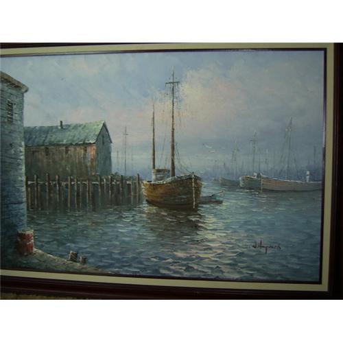 <tr><td>Title:Blue Harbour Scene Painting Canvas- W. Hayward</td></tr>