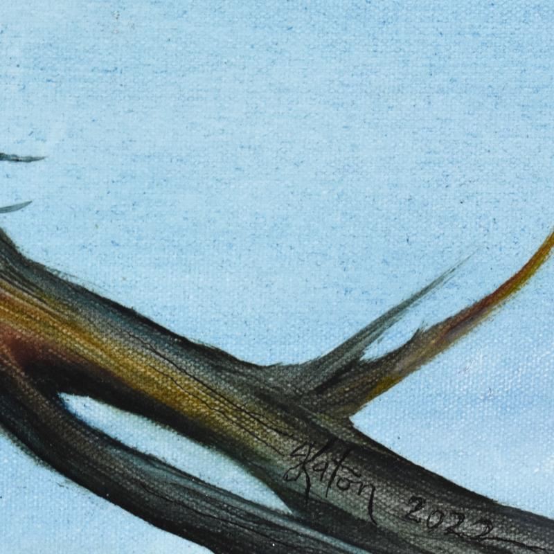 "Blue Jay Blue" is an original oil painting on stretched canvas by Martin Katon, hand signed by the artist. Includes Letter of Authenticity. Measures approx. 20" x 20" (image).