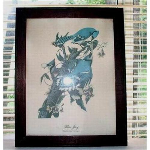 Depicting a pair of blue jays, this old picture's framed size is 11" wide x 14" tall. Very good condition. Purchased at an estate sale and exact age is unknown.