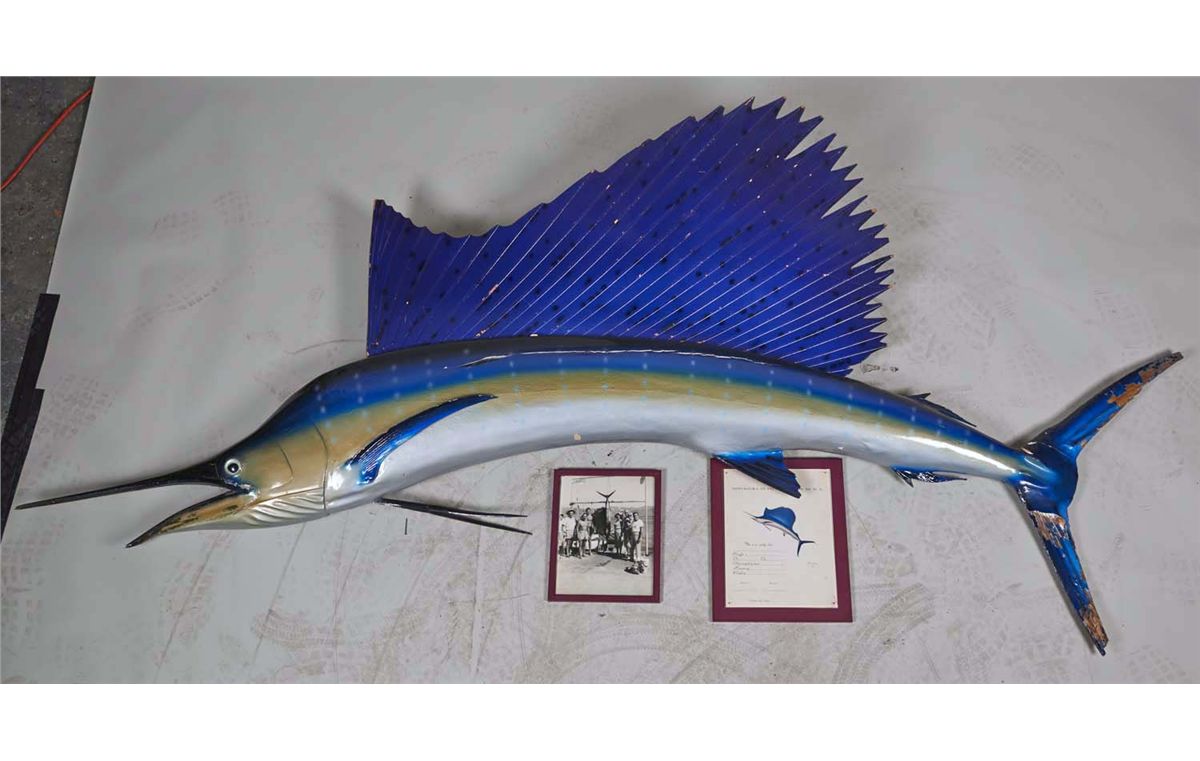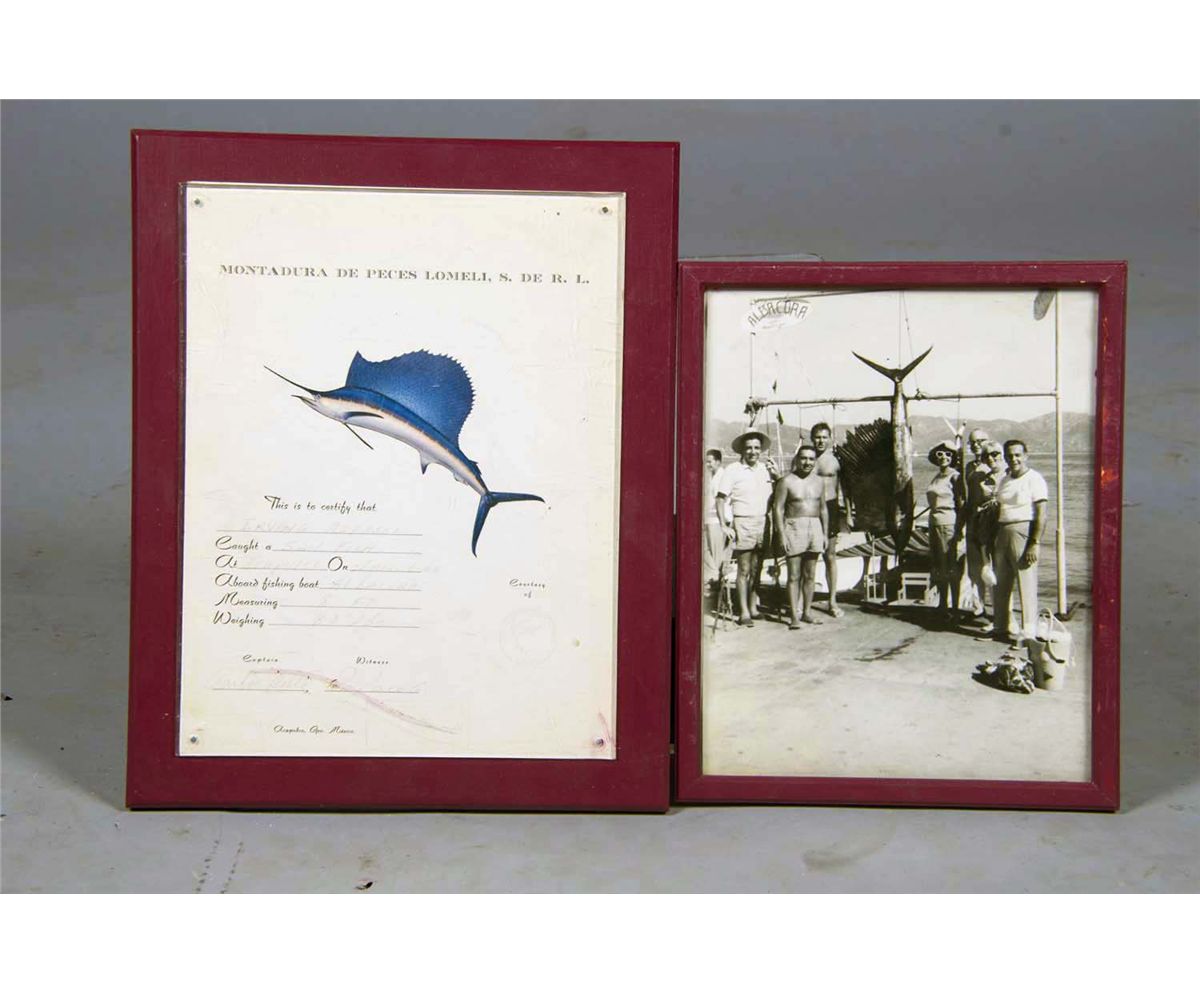 w/ Photograph of fishing party & Certificate of Authenticity , From the fishing boat named Albacora in Acapulco Mexico, January 6 1966 Condition Fair Size Approx. 8' Long