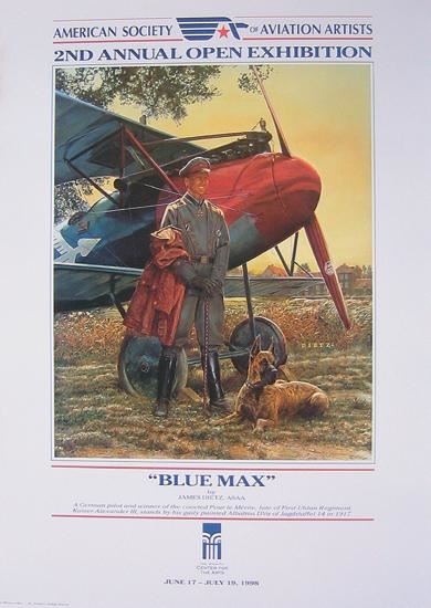 Here is a proud pilot, stadning in front of a Albatross D.V. Scout, with his best friend (the dog) reposing next to him in this great James Dietz poster. This is an open edition poster. The image size is 13 1/2" x 17" and the paper size is 19 1/2" x 27". This print is in excellent condition and has never been mounted or framed.