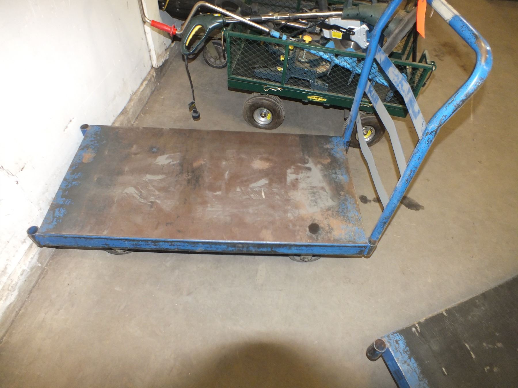 Blue Metal Cart On wheels 4ft x 2ft..used