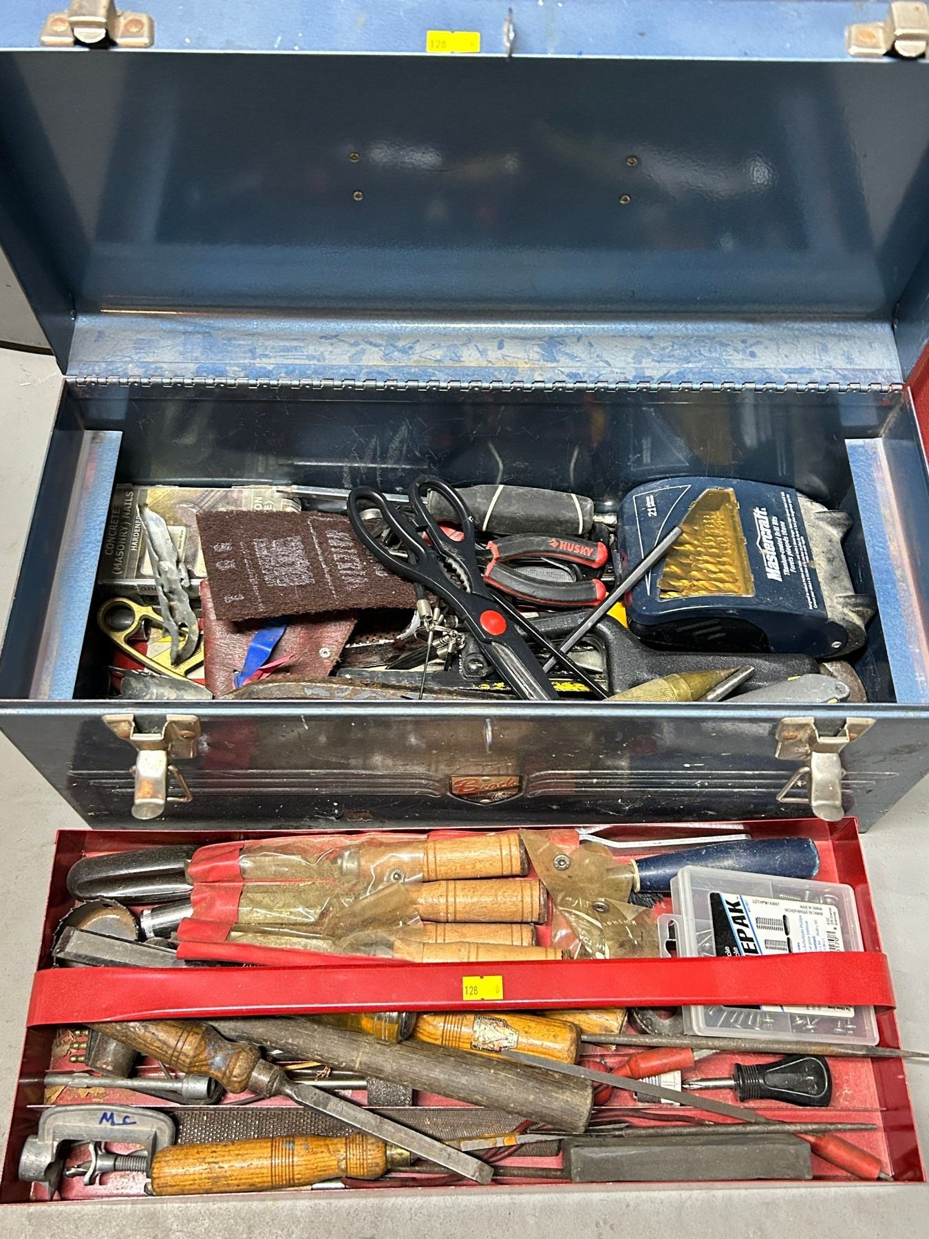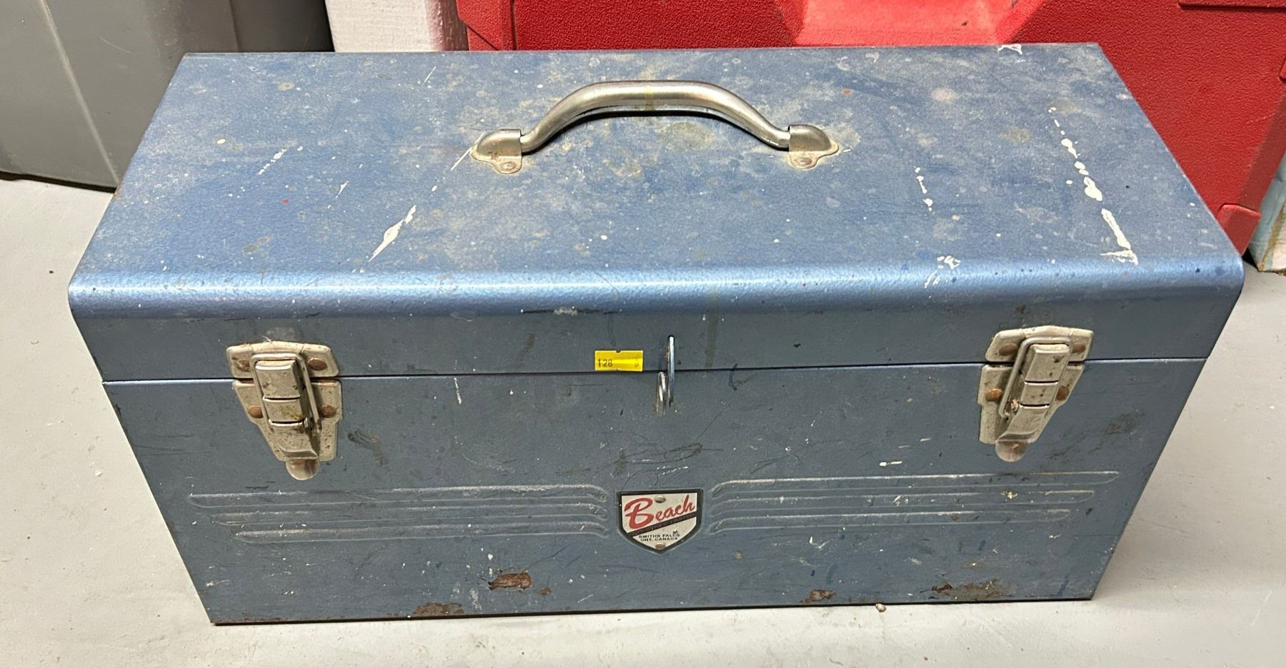 Blue Metal Industrial Tool Box with Misc Hand Tools