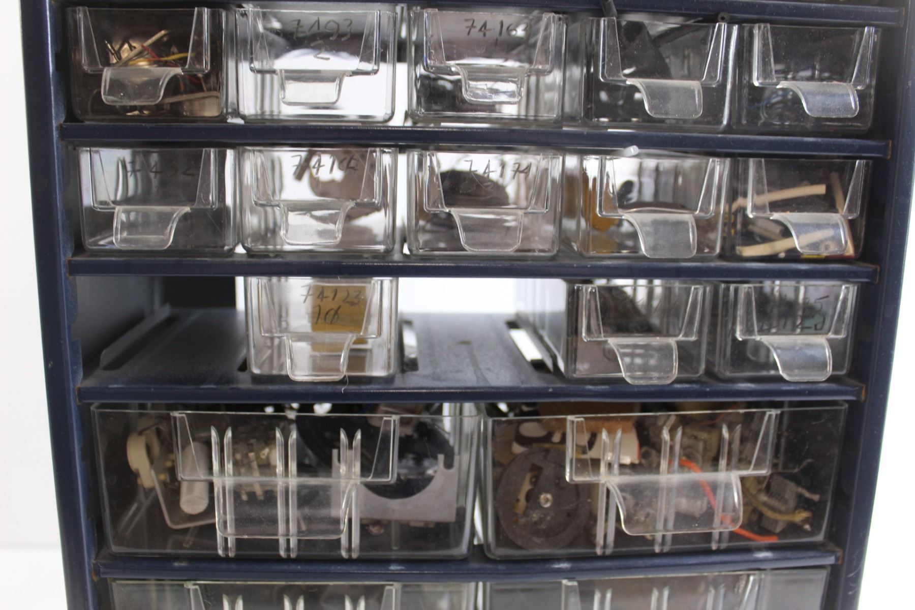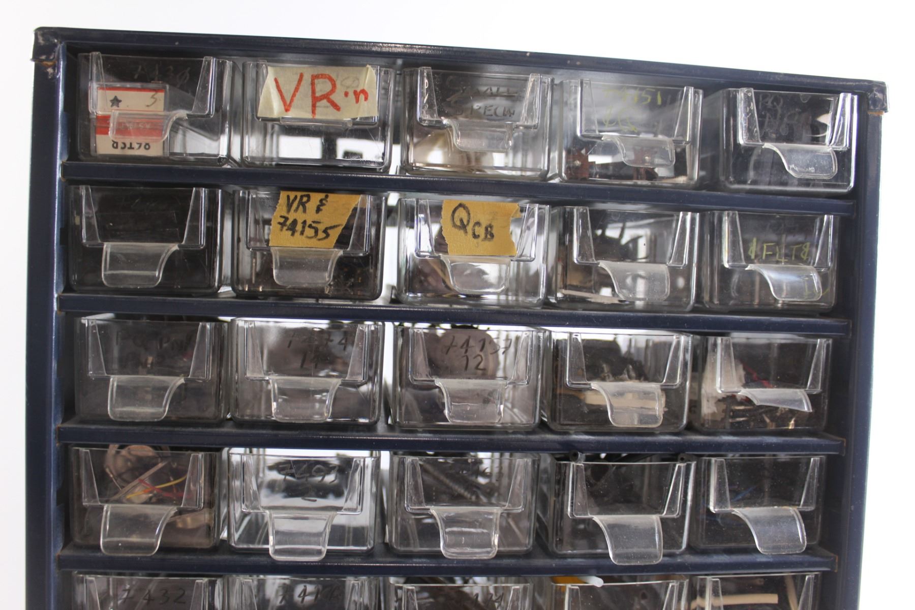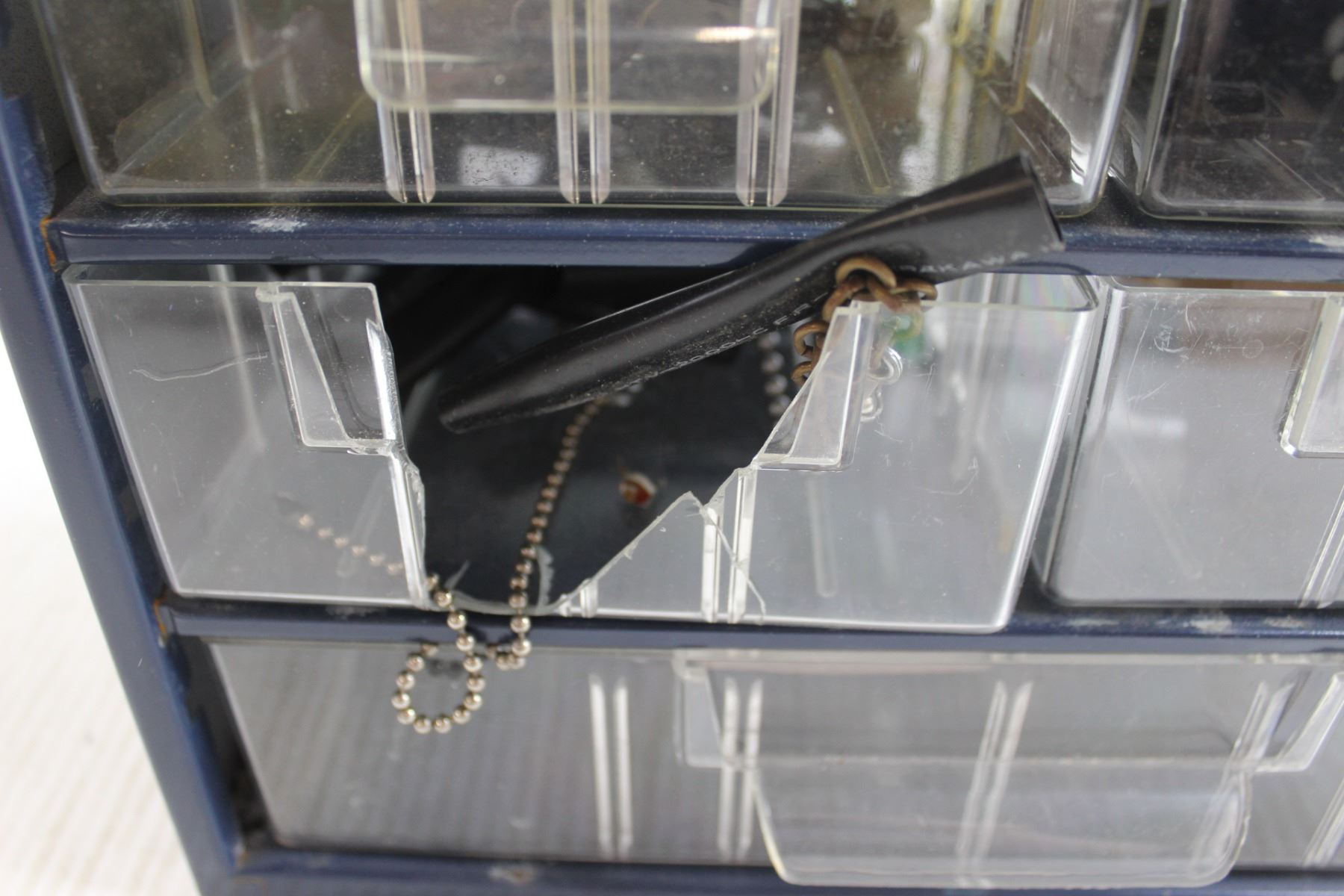 Blue Metal Parts Bin with Parts - Some Missing/Broken