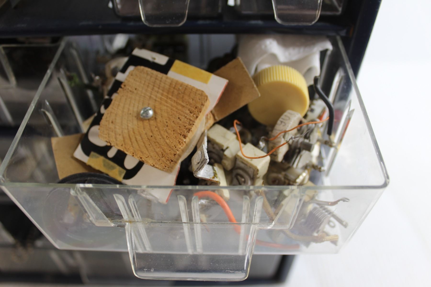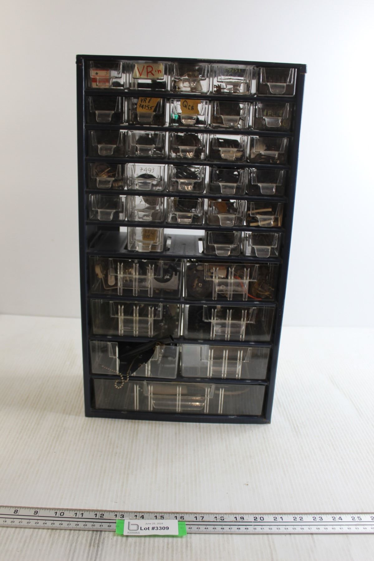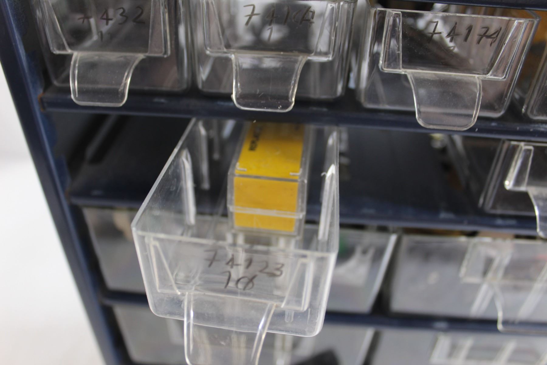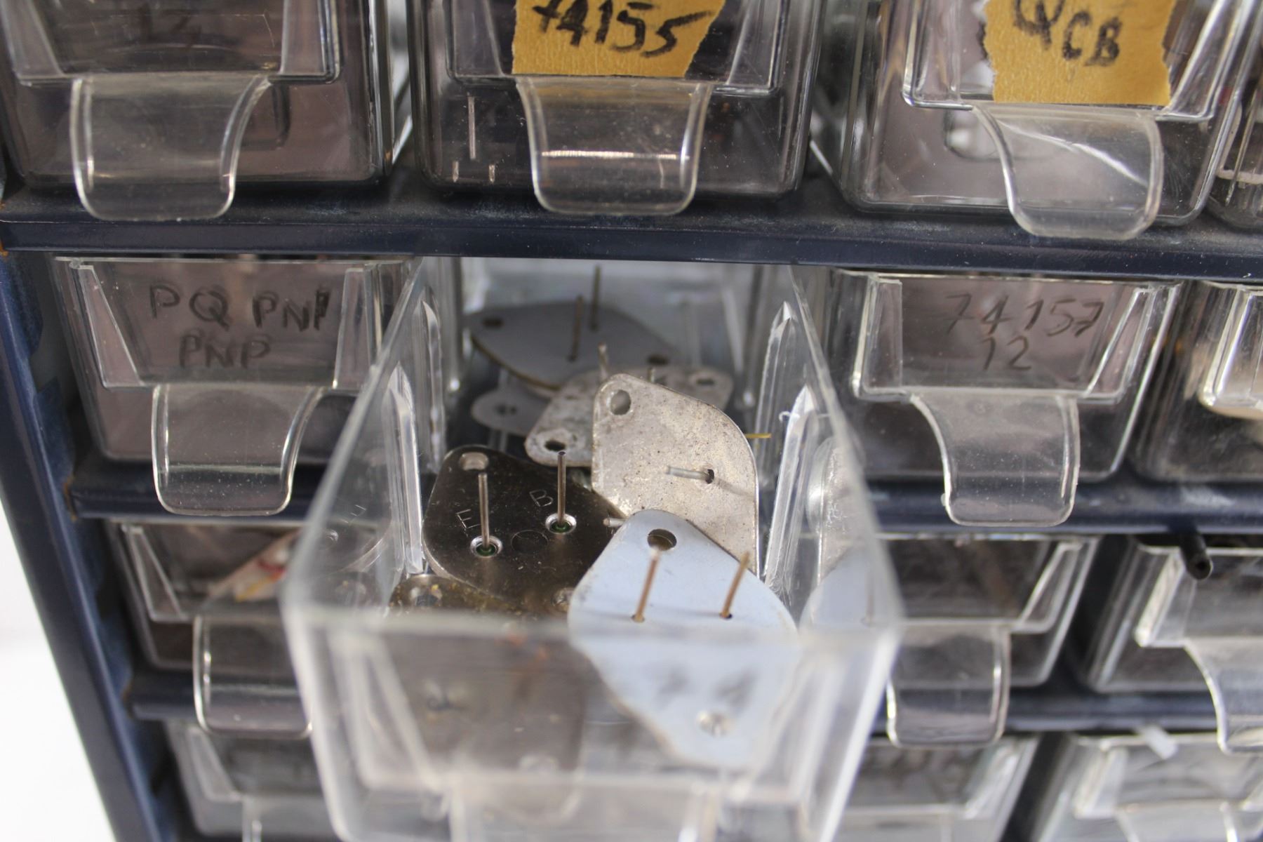 Blue Metal Parts Bin with Parts - Some Missing/Broken