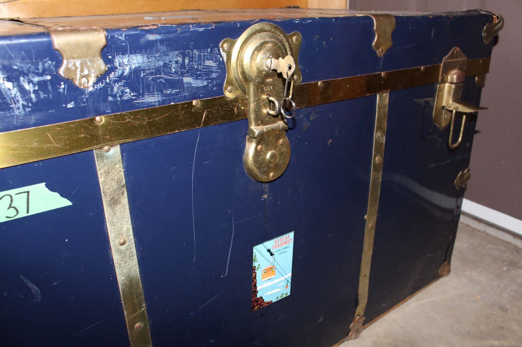 Blue Metal Trunk w/Key (36”x20”x20”)