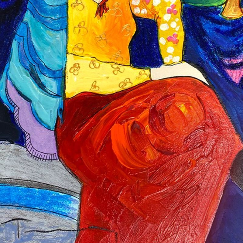 "Blue Mood" is a one-of-a-kind mixed media over paint on wood by Itzchak Tarkay (1935-2012), hand signed by the artist. Includes Letter of Authenticity. Measures approx. 11" x 8" (image).