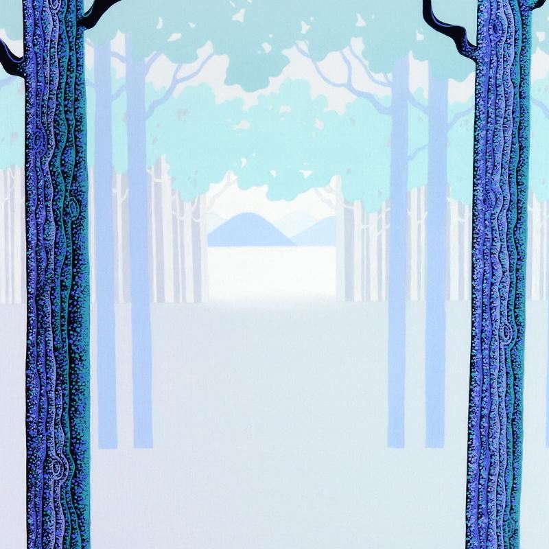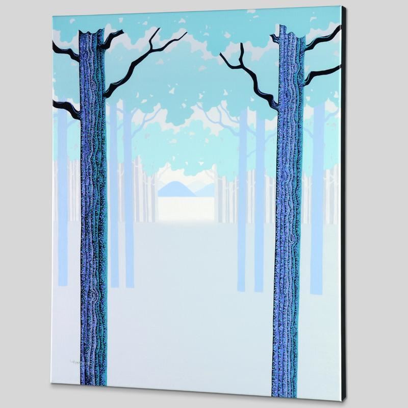 Larissa Holt, a student of distinguished artist Eyvind Earle (1916-2000), uses bold colors and breathtaking scenery to create images of Nature in her own unique style. "Blue Morning" is a limited edition giclee on stretched canvas by Holt, numbered and bearing Holt's authorized signature. This piece comes gallery wrapped. Includes Certificate of Authenticity! Measures approx. 21.5" x 27" x 1.5" (image).