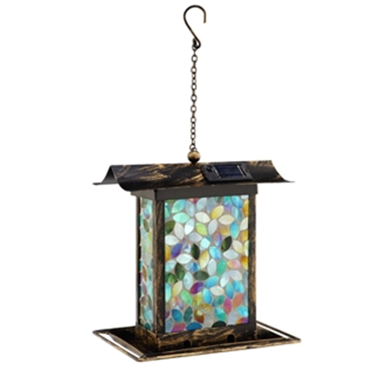 Blue Mosaic Glass Birdfeeder - 10" X 9" X 6" - Iron, Glass & Sheet Metal