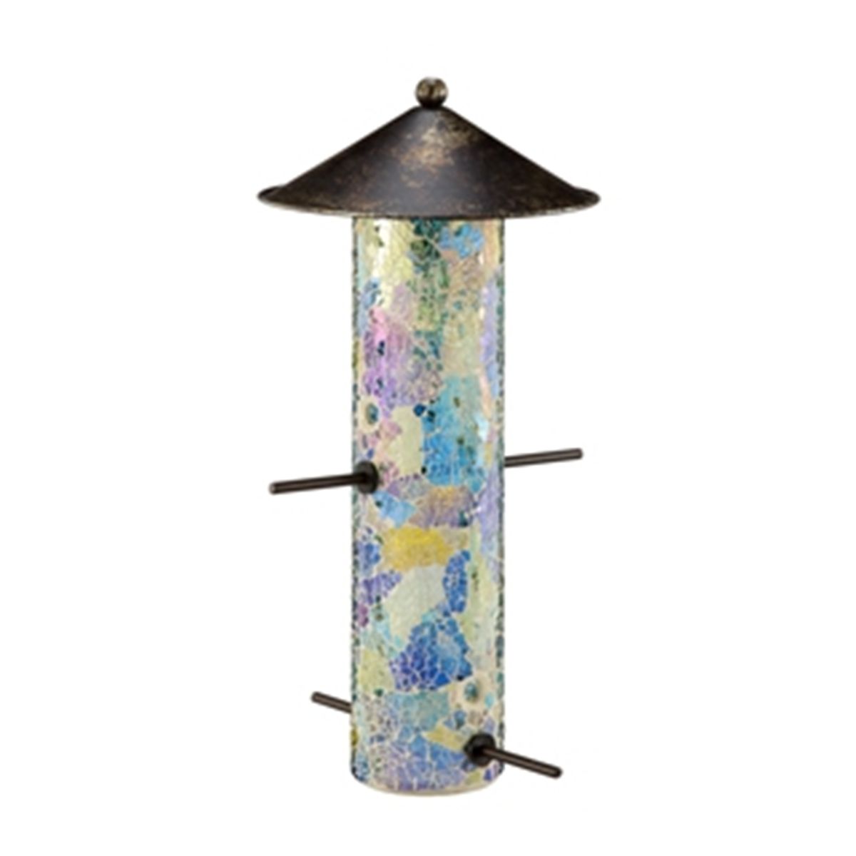 Blue Mosaic Glass Birdfeeder - 12.5" X 6" X 6" - Iron, Glass & Sheet Metal