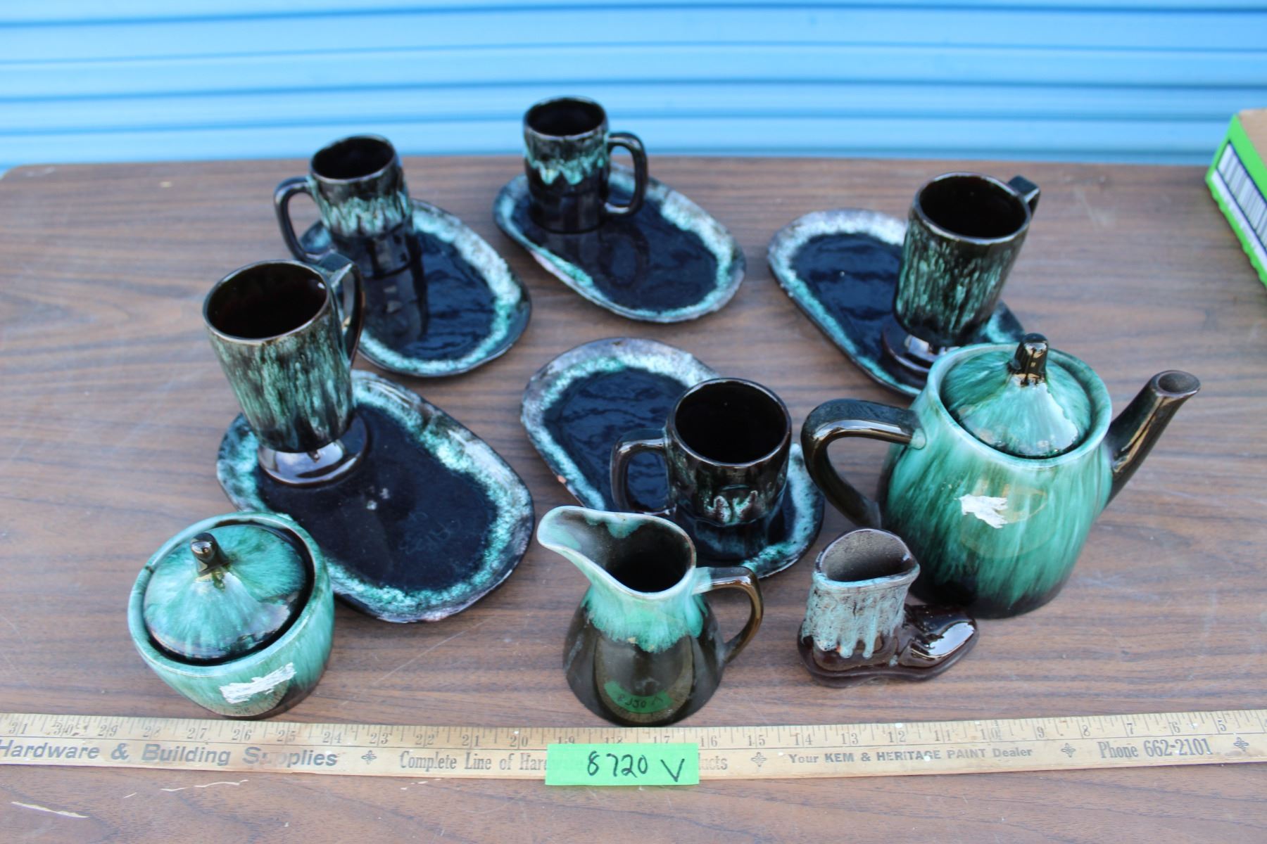 ** Blue Mountain Coffee Pot, Assorted Mugs and Plates