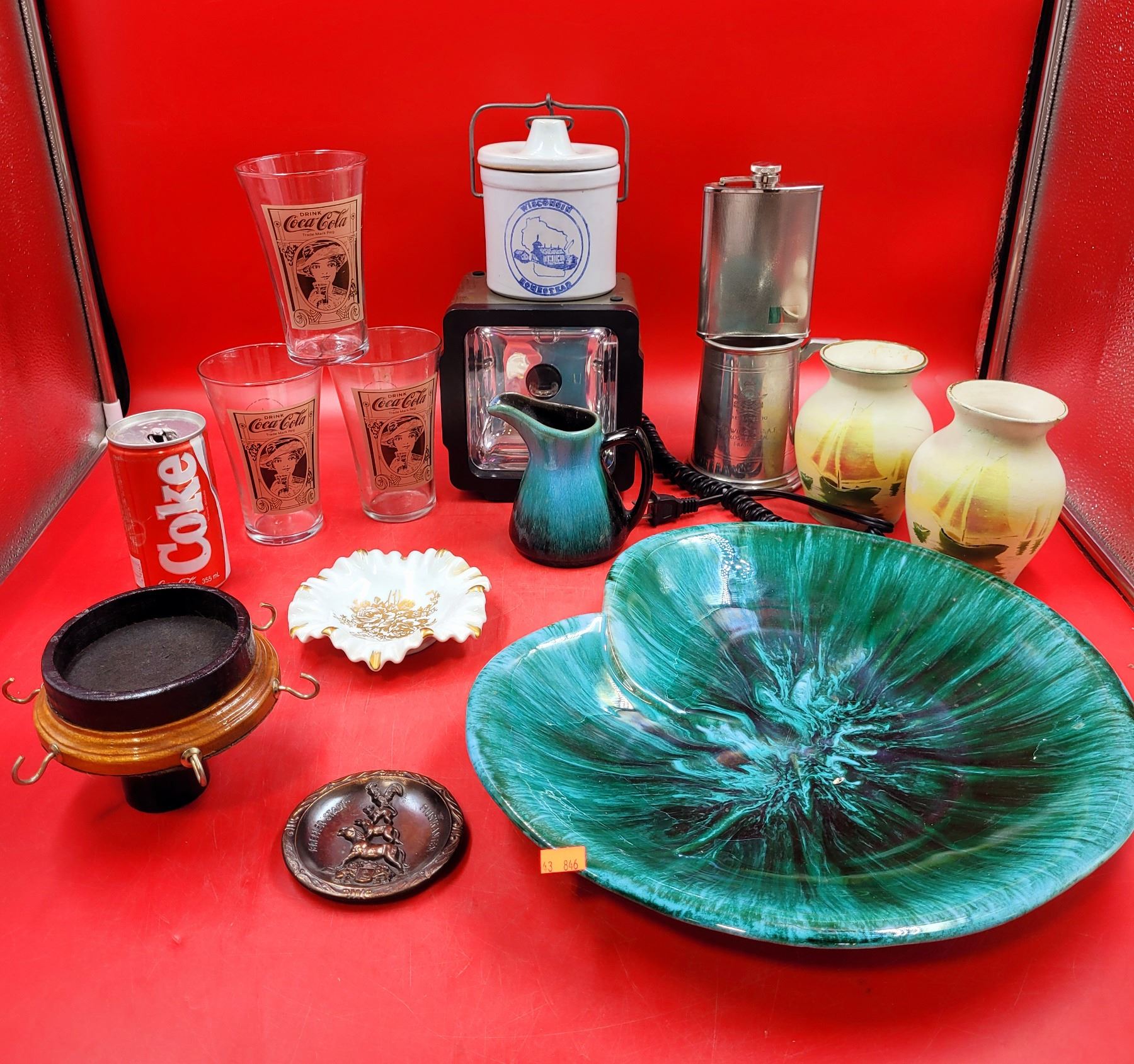 Blue Mountain Pottery Lily Pad Plate & Jug Made in Canada, Coca-Cola Glasses, Cheese Crock, & More