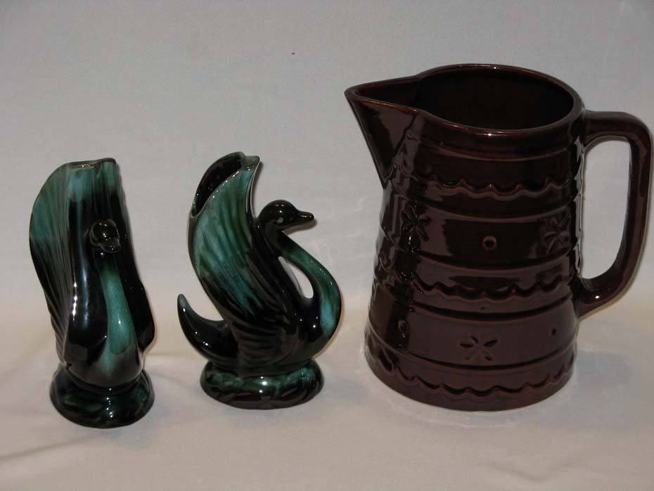 Blue Mountain Pottery Swans & Marcrest Stoneware Pitcher