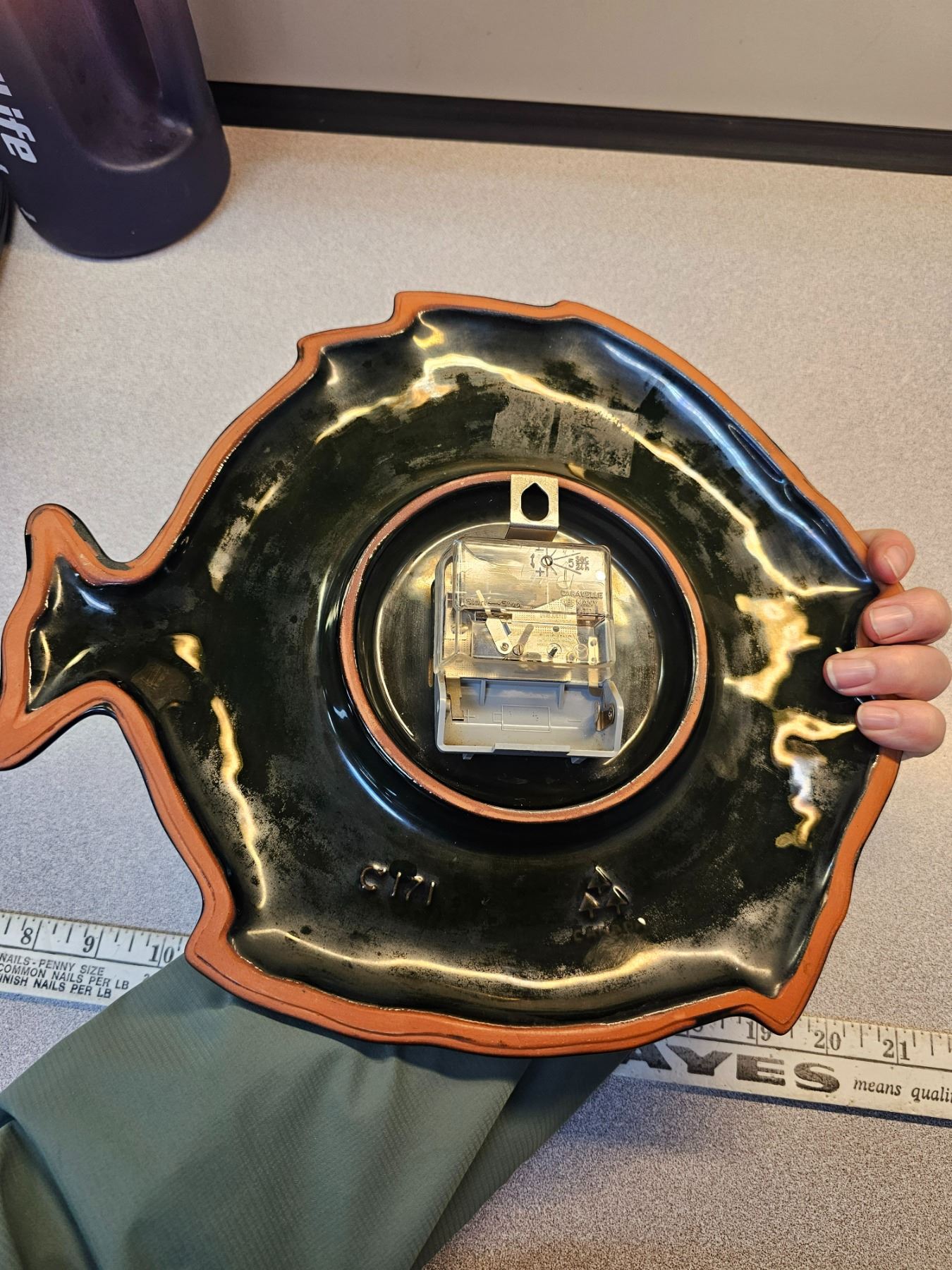 Blue Mountain pottery fish clock - battery op
