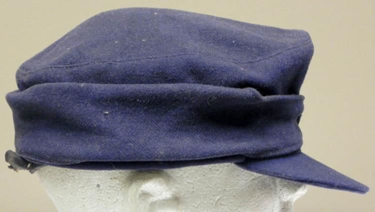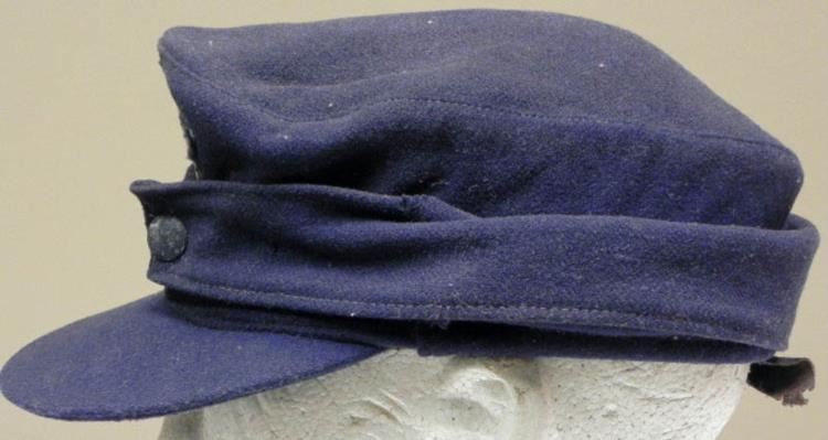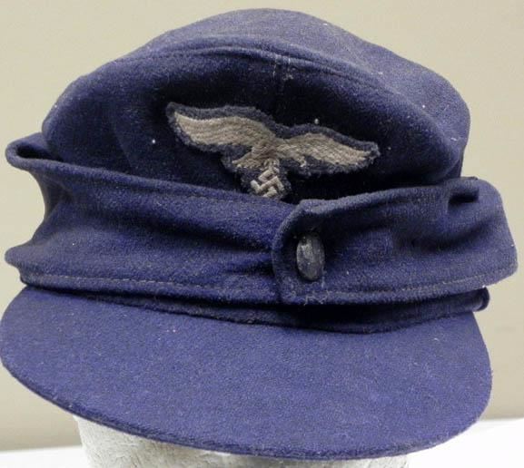 Offered here is a blue Nazi Luftwaffe Hat with Eagle and Swastika sewn on front. Inside is the hat is a brown leather liner.