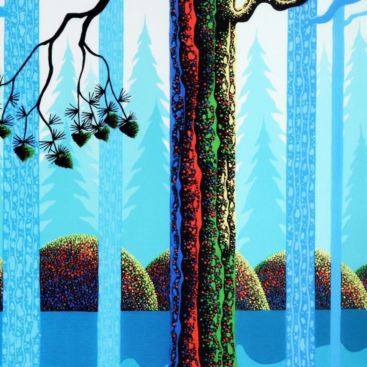 Larissa Holt, a student of distinguished artist Eyvind Earle(1916-2000), uses bold colors and breathtaking scenery to create images of Nature in her own unique style. "Blue Neon" is a limited edition giclee on stretched canvas by Holt, numbered and bearing Holt's authorized signature. This piece comes gallery wrapped. Includes Letter of Authenticity. Measures approx. 21" x 26" x 1.5" (image). Reference #: 237433.