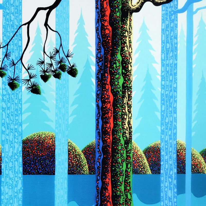 Larissa Holt, a student of distinguished artist Eyvind Earle(1916-2000), uses bold colors and breathtaking scenery to create images of Nature in her own unique style. "Blue Neon" is a limited edition giclee on stretched canvas by Holt, numbered and bearing Holt's authorized signature. This piece comes gallery wrapped. Includes Certificate of Authenticity! Measures approx. 21" x 26" x 1.5" (image).