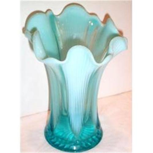 <tr><td>Title:Blue Opalescent Ribbed Jefferson Glass Vase</td></tr>