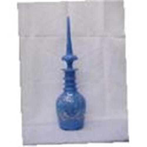 <tr><td>Title:Blue Opaline Jeweled painted Decanter</td></tr>