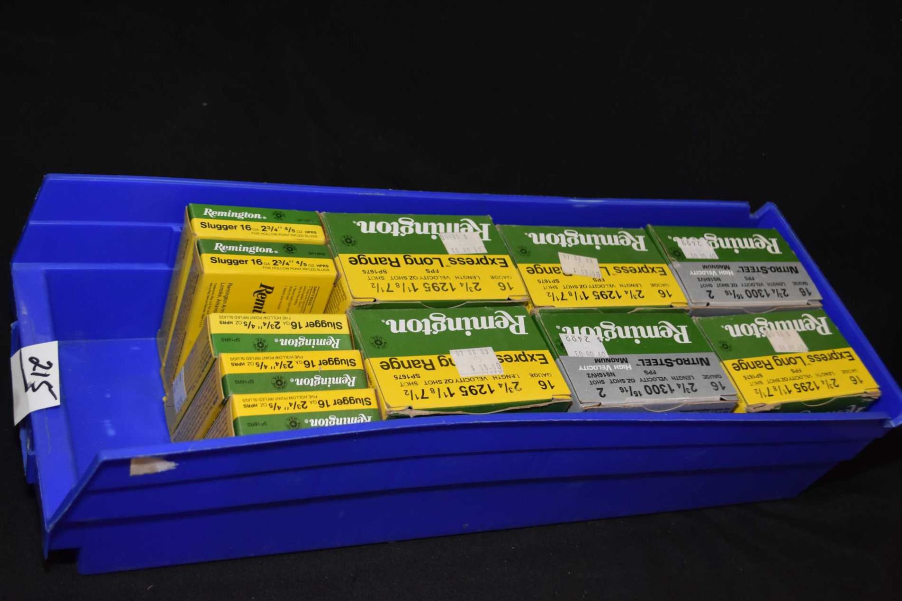 Blue Plastic Tray : Six Boxes ( 25 rnds ) Remington Nitro Steel # 2 Express Long Range 7 1/2 Shot Shells Retail $ 18.00 - $ 24.00 Five Boxes ( 5 rnds per ) .16 GA 2 3/4" Slugger Shot Shells Retail $ 6.99