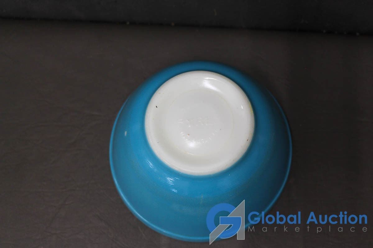 Blue Pyrex Bowl and White Federal Oven Ware Milk Glass