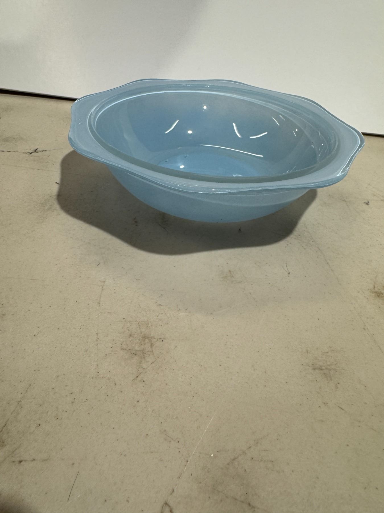 Blue Pyrex spray ware bowl