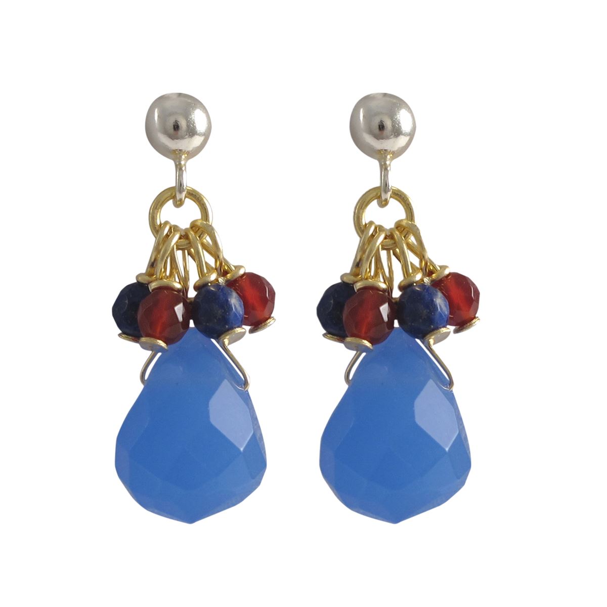 Blue Quartz Combination Semi Precious Stones, Gold Plated Sterling Silver Post Earrings, 1"