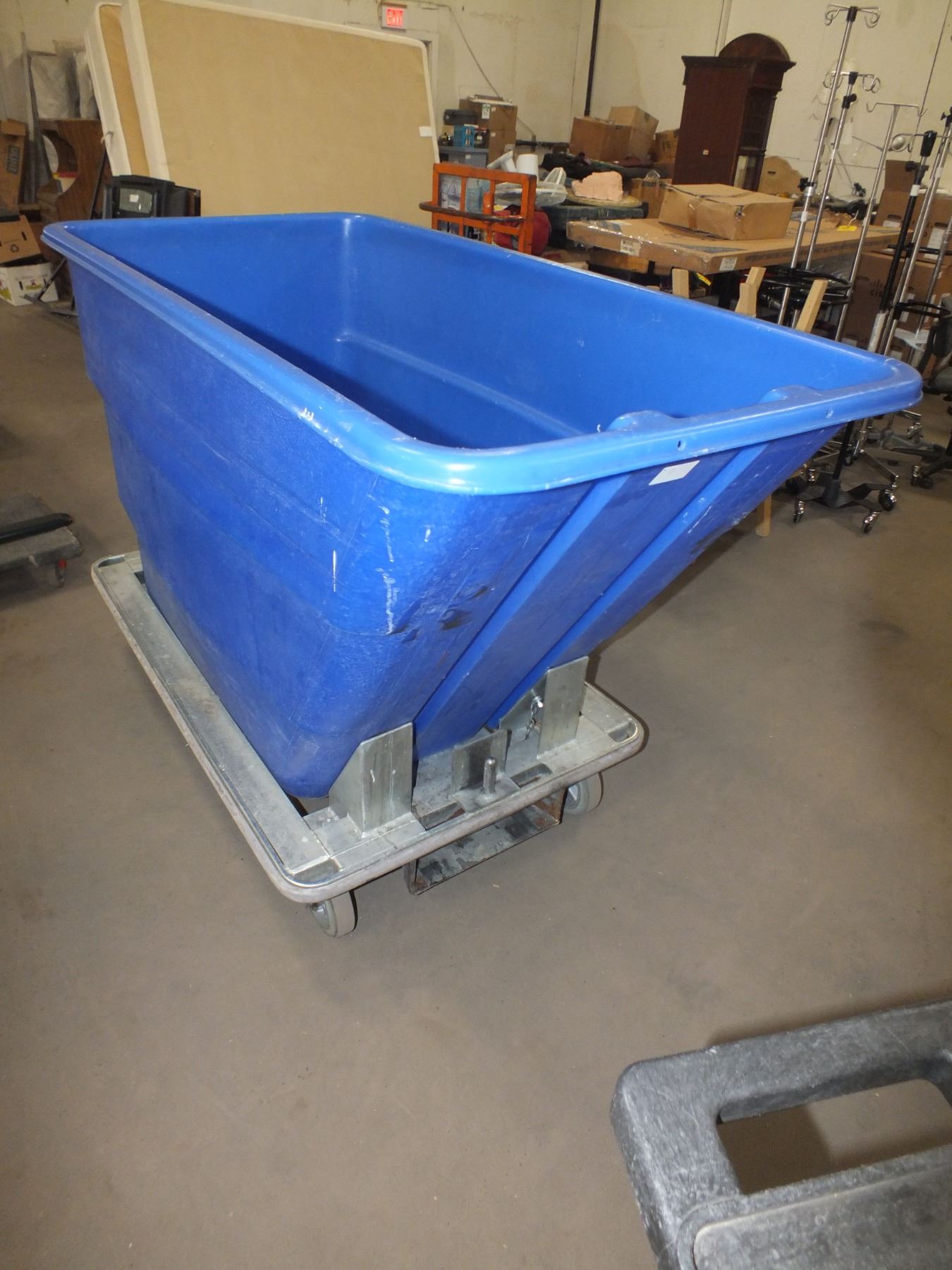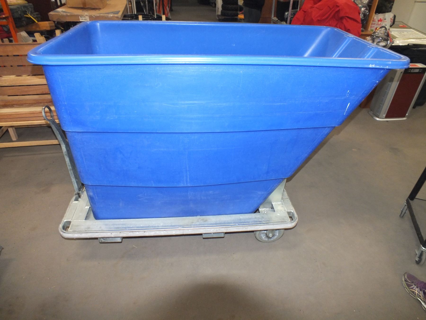 Blue Recycle Bin On Wheels, 65"l 322"w, 48"d...used