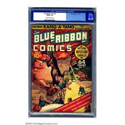 Blue Ribbon #2 (MLJ, 1939) CGC FN/VF 7.0 Cream to off-white pages. Before Rin Tin Tin, before Lassie, before Krypto, and way before DC's Rex became "The Wonder Dog," Rang-A-Tang was "The Wonder-Dog." Guess DC was on sound legal ground and not stealing the moniker because their "Wonder Dog" wasn't hyphenated. But seriously, folks, this historical title is MLJ's first comic book series. Norman Danberg's wonderful cover was quite distinctive in 1939, and such trend-setters as Jack Cole, Charles Biro, and Irv Novick helped Norman on the inside. According to the CGC census, this nice copy is just a tad less highly graded than only one other of the issue. This book is undervalued and likely a real steal at this auction. Overstreet 2002 FN 6.0 value = $408; VF 8.0 value = $852. Important notice: We expect to be auctioning lots at the rate of 200-250 per hour. Sometimes eBay Premier live bid software cannot keep up with that pace, so we strongly recommend that you place a realistic proxy bid now as insurance to avoid disappointment. Also please note that all Heritage/CAA lots purchased through eBay Premier carry a 20% Buyer's Premium. Please make sure you read the Terms and Conditions.