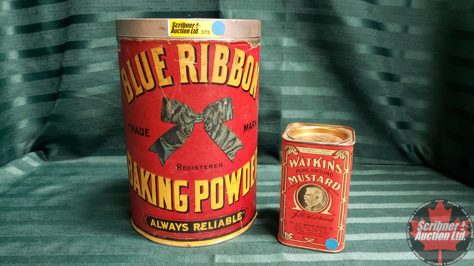 Blue Ribbon Baking Powder Tin & Watkins Mustard Tin