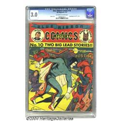 Blue Ribbon Comics #10 (MLJ, 1941) CGC GD/VG 3.0 Off-white to white pages. Second appearance of Mr. Justice. Overstreet 2003 GD 2.0 value = $102; VG 4.0 value = $204. Important notice: Heritage usually auctions material at the rate of 200-250 lots per hour. On some occasions eBay Live bid software or the Internet may not be able to keep up with the pace of the auction. We recommend placing a realistic absentee bid now as insurance to avoid disappointment. Occasionally the auctioneer may eliminate or reject an eBay Live bid, and the auctioneer may also reopen a lot after the close of the eBay live bidding (usually because we missed an audience bid), and may reject your bid even if it shows you as the winning bidder. By bidding via eBay Live, you agree that Heritage may award the lot to another bidder at its sole discretion under the circumstances described above or any other reasonable circumstances. Since eBay bids are not shown to us until we open the lot on the floor, we treat those bids just like floor bids. In most cases the floor responds before the eBay bid is presented to us, due to Internet lag time, so for consistency we have made it a policy that floor bids are always considered first over tie eBay live bids. Also please note that all Heritage lots purchased through eBay Live carry a 20% Buyer's Premium. Please make sure you read the Terms and Conditions before you bid.
