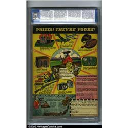 Blue Ribbon Lot (MLJ, 1940-41). Two nice unrestored Blue Ribbon Comics make up this lot. Issue #7 has an incredible classic cover which shows some helpless people riding on a conveyor belt into the flaming mouth of a dragon! This WWII-era book also features a Nazi story and Rang-A-Tang the Wonder Dog. Graded a FN 6.0 by CGC, this book has a "very minor amount of glue on cover." The pages are cream to off-white. Issue #19 features Captain Flag, and was graded a VG- 3.5 by CGC, with cream to off-white pages. These MLJ books are very nearly impossible to find in any condition. Overstreet 2002 value for group = $315. 2 Comic Books Important notice: We expect to be auctioning lots at the rate of 200-250 per hour. Sometimes eBay Premier live bid software cannot keep up with that pace, so we strongly recommend that you place a realistic proxy bid now as insurance to avoid disappointment. Also please note that all Heritage/CAA lots purchased through eBay Premier carry a 20% Buyer's Premium.